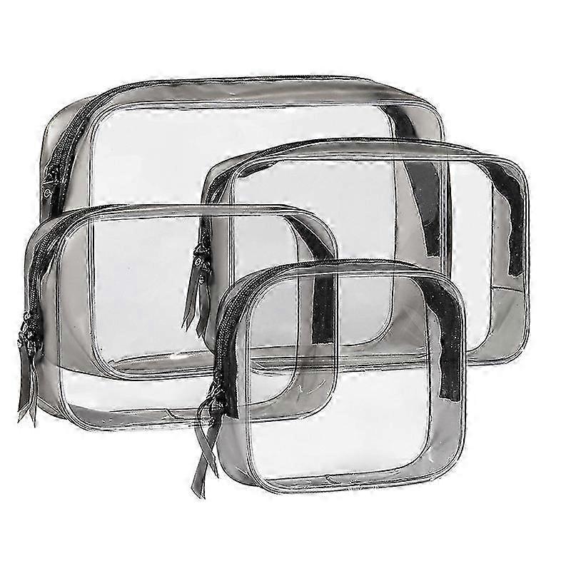 [Four Size for Multiusage]: Toiletry bags come with 4 different sizes, sufficient quantity enough for various requirement. The toiletry bag with sturdy zipper design which is very convenient to pack with toothbrush, shampoo, liquids. The small makeup pouch is roomy enough for cosmetics, jewelry, cards, cash and some coins. Meet your daily personal needs, convenient and multipurpose. [Double Stitchings Design]: Compared with other travel bags, our clear wash bags are Upgraded from single stitching to Double Stitching, which is more durable and waterproof. Reinforced stitching seam make sure this clear bag not easy to tear on the seam, offering you a long usage on this bag, happy to travel with it. [Waterproof and Easy Cleaning]: All of the travel pouches are made of great quality thick PVC material which can provide you with the ability of waterproof function. Its a good solution to separate the wet swimwear, towel, clothing in your bag as well as make up bag for lotion, conditioner and other liquid cosmetics in case of leaking to ruin your bag and other stuffs.This toiletry bag is can be washed directly with water inside and out, and dry it in a ventilated place. [Portable & Lightweight]: These makeup bags with features of light weight which is not only perfect for traveling, business trip, camping and outdoor actives, but also good for using at home as storage bag for the little stuff such as lipstick, hair clips, little toy, earphone and so on. To keep your things organized and make your room clean and neat.