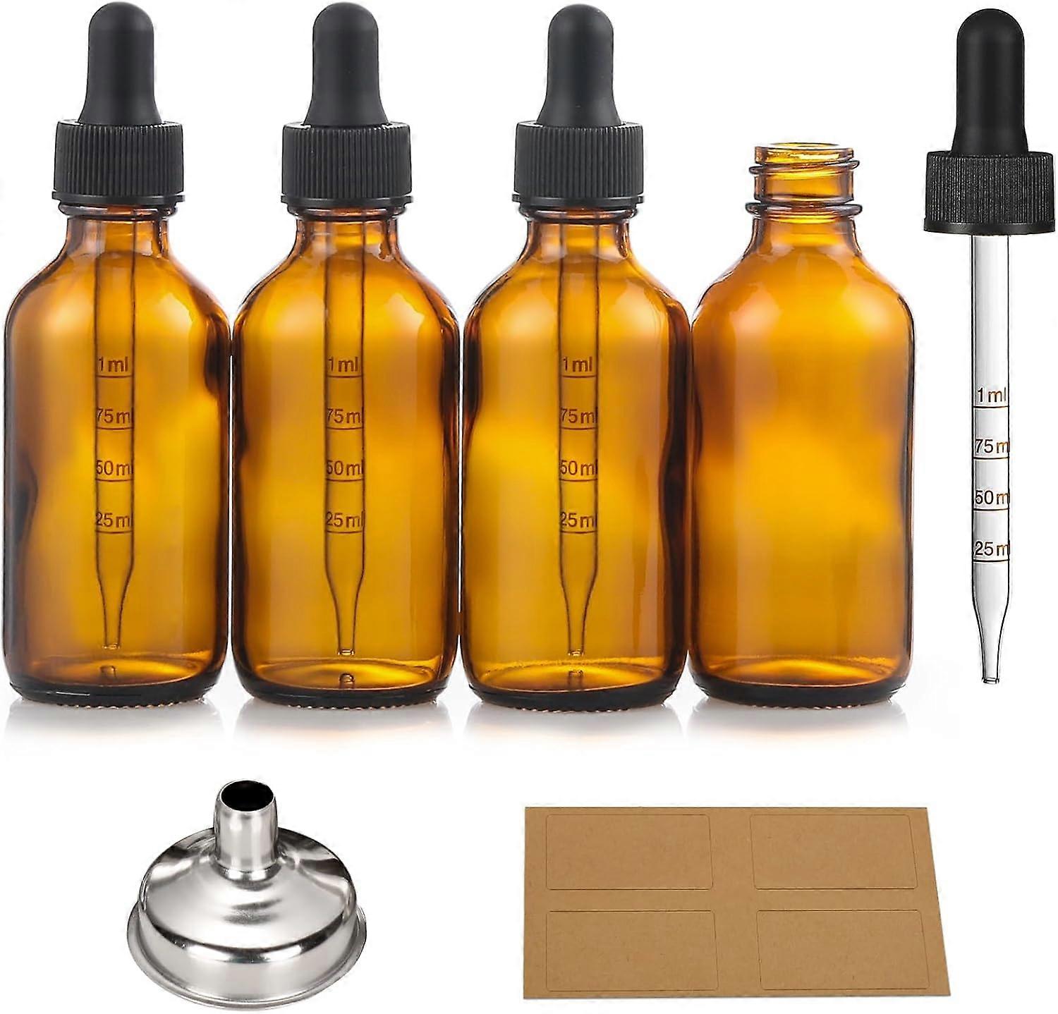 4 Pack 1 oz Glass Dropper Bottles with Measured Dropper - 30ml Dark Amber Tincture Bottles with Graduated Eye Droppers for Essential Oils - Leakproof