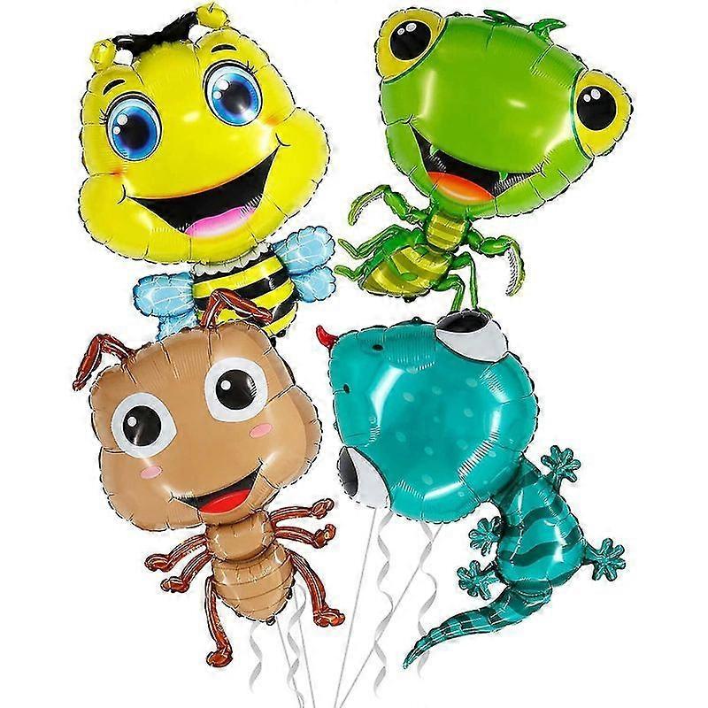4 Pack 18 Inch Cute Insect Animal Foil Balloons Bee Gecko Snail Mantis Balloons For Wildlife Animals Garden Theme Birthday Party Decorations Supplies