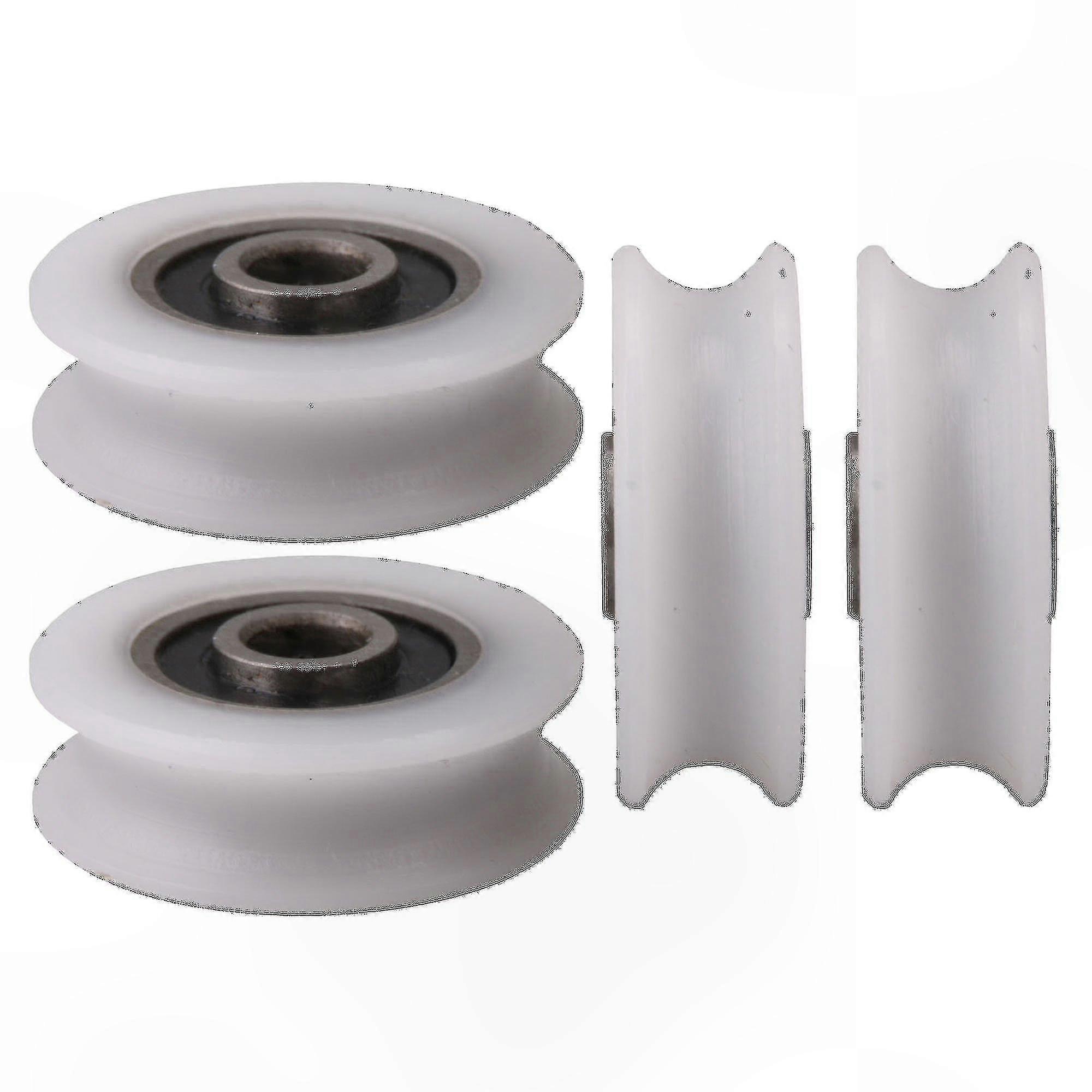 4-Pack 22x6x8mm White Nylon U-Groove Pulley Wheels for Sliding Doors with 6mm Inner Diameter