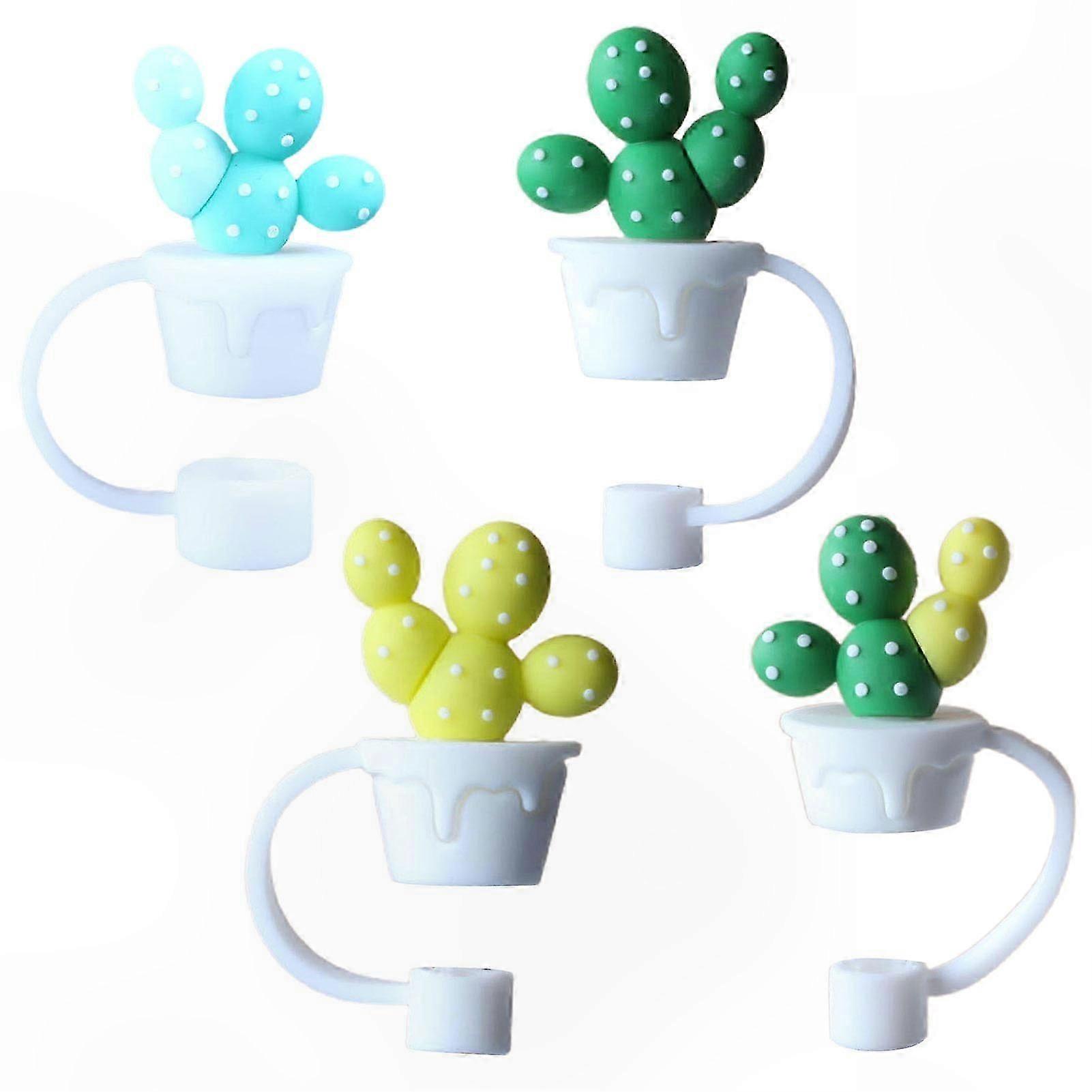 4-Pack 8mm Cactus-Shaped Straw Covers Food-Grade Reusable Dustproof Plastic Tips for Glass Straws Kitchen Accessories