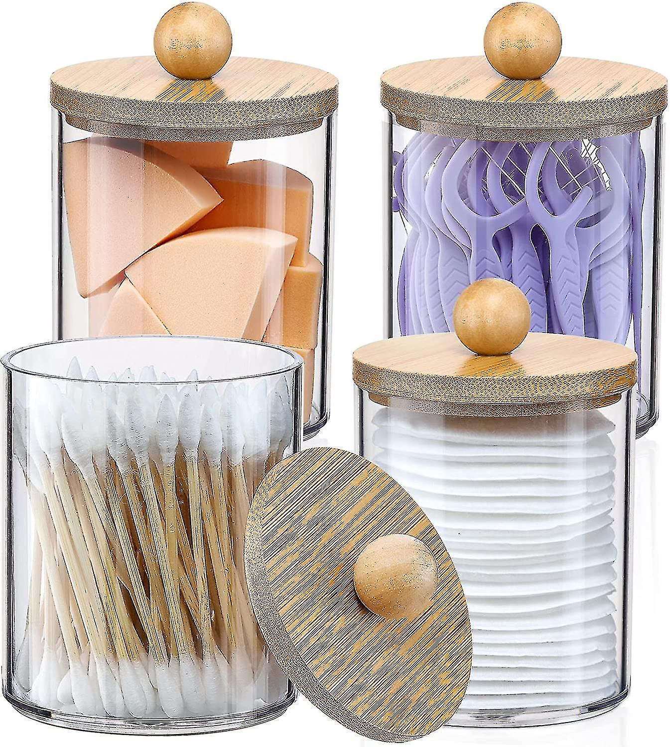 4 Pack Qtip Holder Dispenser ,10 Oz Clear Plastic Apothecary Jar Containers For Vanity Makeup Organizer