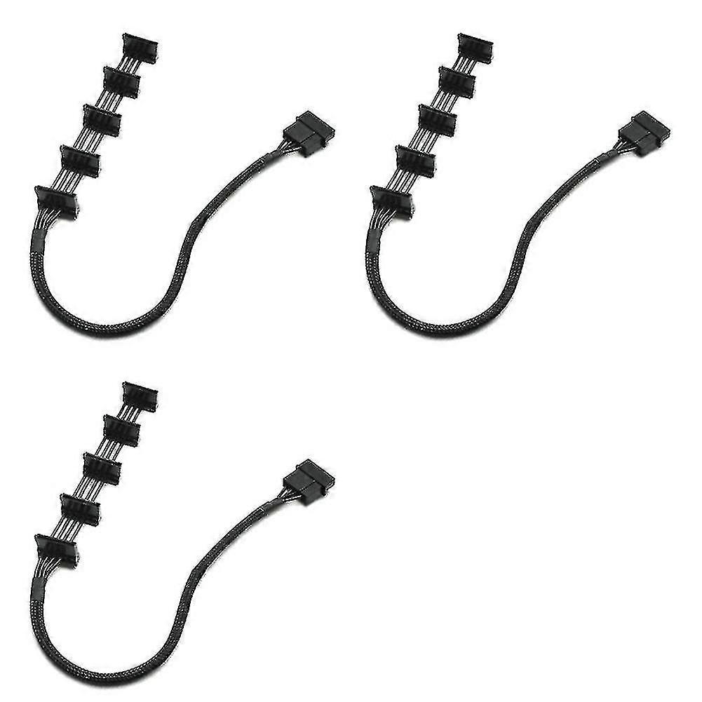 3 Pieces Of 4-pin Ide Molex 1 To 5 Sata Power Cord 18awg Black 55 Cm