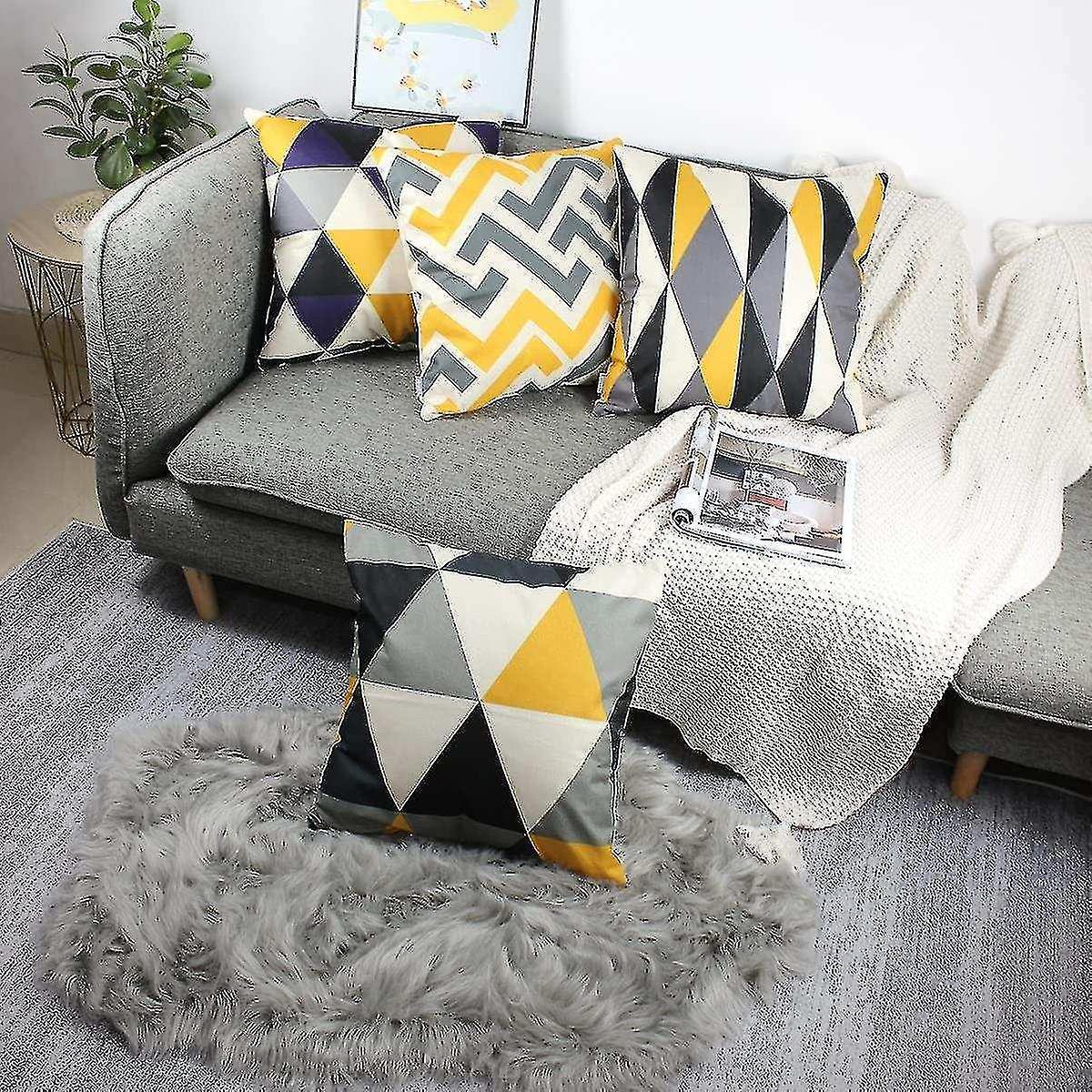 4-Piece Geometric Linen Cushion Covers, 18X18", Yellow/Grey, 45X45Cm, Outdoor/Garden Furniture