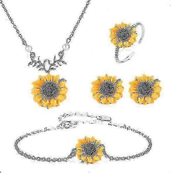 4 Pieces Sunflower Pendant Necklace Dangle Earrings Jewelry Accessories For Women Girls June 6.15