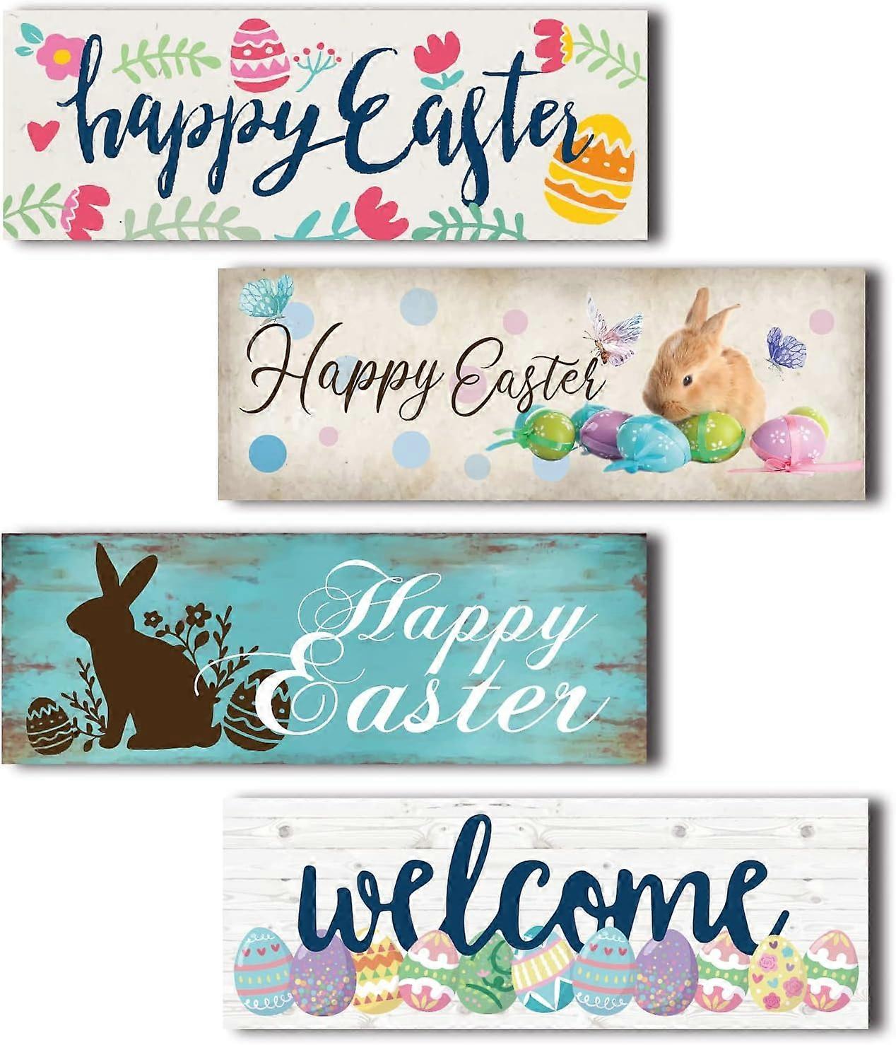 4 Pieces Easter Welcome Door Sign Bunny Sign Decor Rabbit Themed Wall Decor Farmhouse Wooden Wall Sign Decorations Set Wall Mount for Home Office Bath