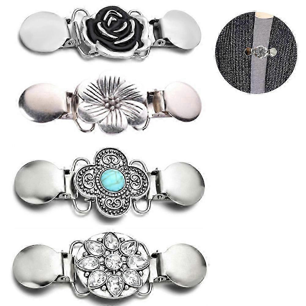 Product Material: Alloy + RhinestoneSize: about 10.5cmColor: silver, goldStyle: Style 1, Style 2, Style 3Quantity: 4 piecesPackage content: 4 pieces * cardigan clip1.Vintage sweater collar clips set: package includes 4 pieces vintage sweater shawl clips in different styles, can meet your different matching needs, also can serve as gifts for your respecter, mother, teachers, friends and so on.2.Elegant and exquisite: our cardigan collar clips are retro and elegant ones, you can find flower pattern, leaf pattern and more on their surface, exquisite design add more charm to your clothes, and easily match with your different kinds of outfits3.Durable to use: these dress shirt brooch clips are made of quality alloy, some are decorated with rhinestone, durable enough to be kept for quite a while, not easy to break down or deform, the color will not fade as well.4.Suitable for many occasions: the vintage sweater shawl clips can match with different clothes and dress up, such as sweaters, dresses, collars, scarves, jacket and more, suitable for both formal and casual occasions like dating, working, wedding, etc.5.Easy to operate: exquisite and classic clips, just open the clips gently and clip them on your clothes firmly, make your more attractive and eye-catching in the crowds, convenient to clip and take off.