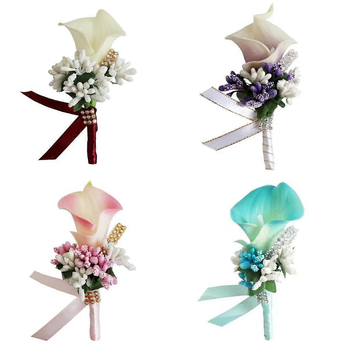 4 Pieces Wedding Prom Corsage Party Flower Brooch Groom Boutonnieres Corsage Pin