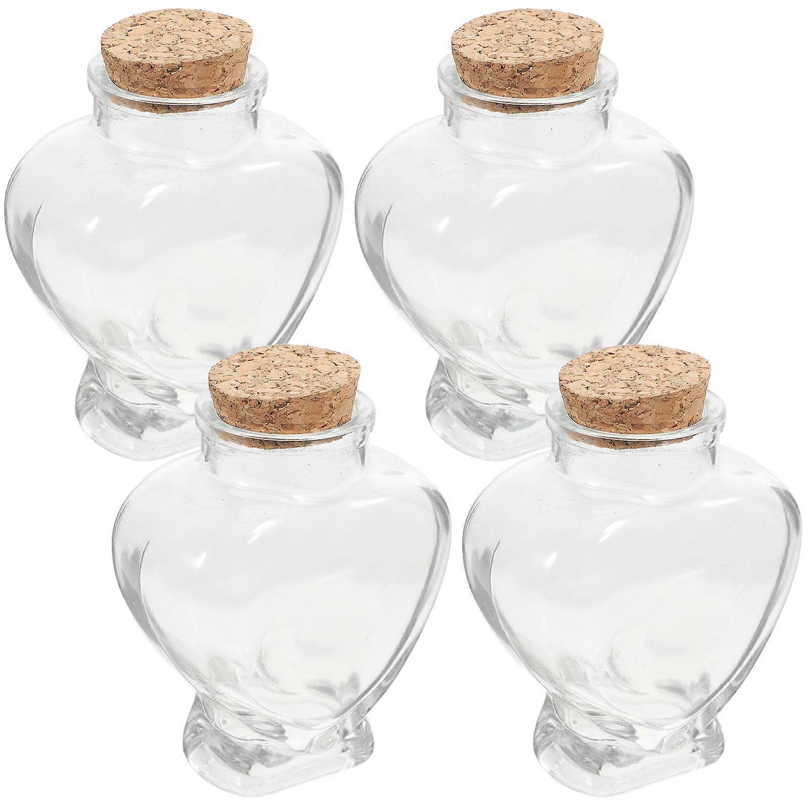 4pcs Glass Wish Bottles Sand Keepsake Heart Type Glass Favor Jars With Cork Lids