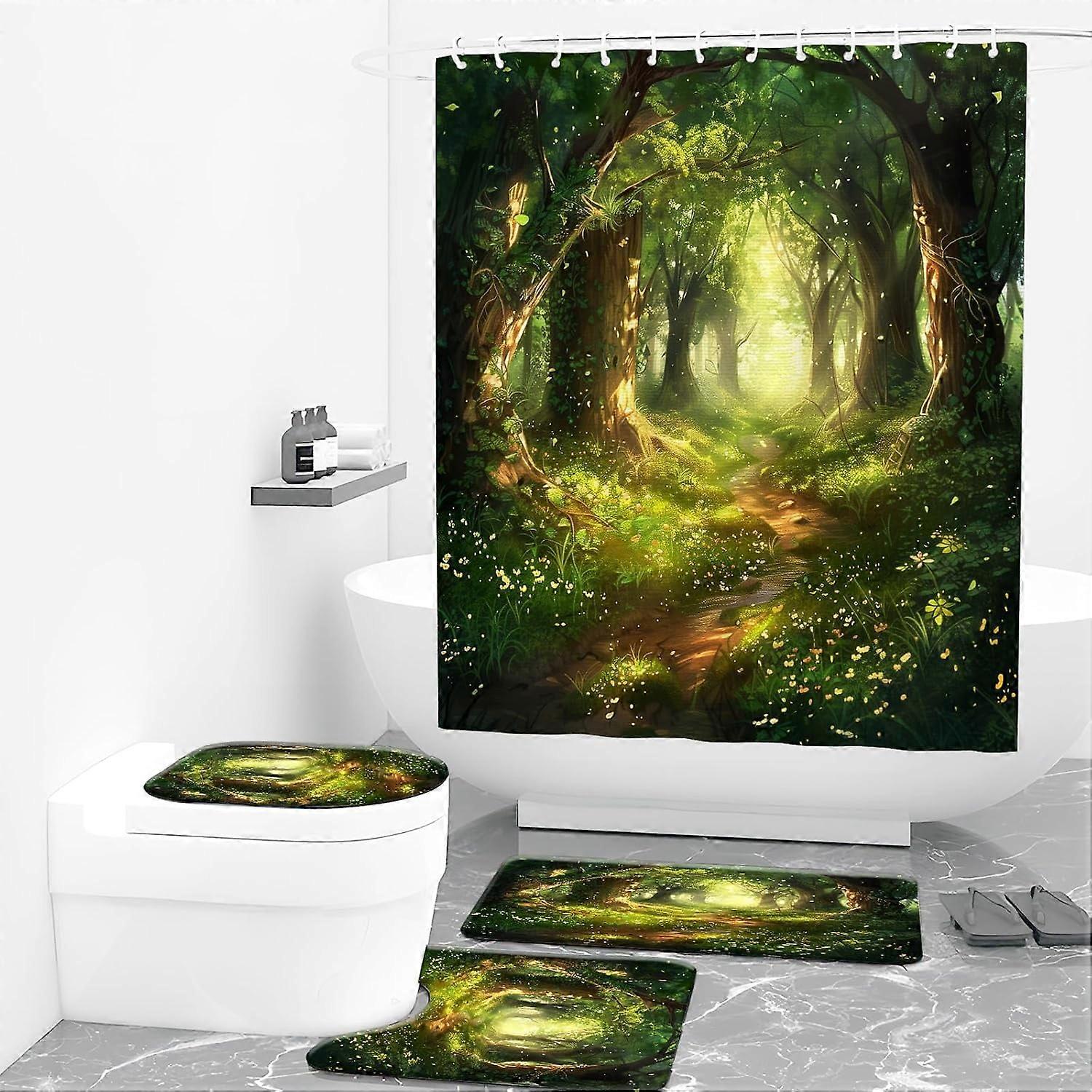 To give your bathroom a new look, we've crafted this luxurious bathroom set that includes a shower curtain, U-shaped rug, toilet seat, bath mat and 12 strong hooks. Each piece features an elegant and stylish design with bright colors to inject a touch of vitality and beauty into your bathroom.