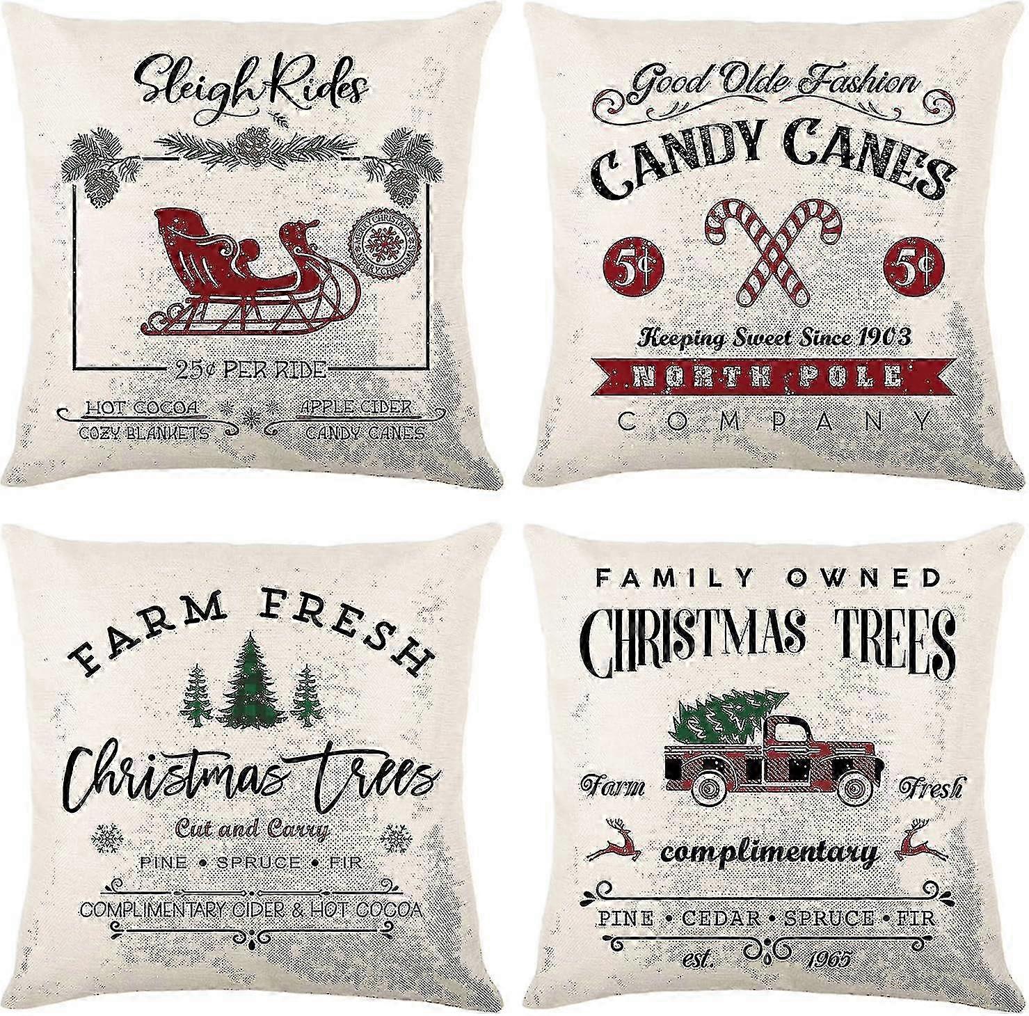 4-Piece Christmas Sofa Cushion Covers Colorfast Linen, 45x45, with Invisible Zipper for Sleigh Decoration