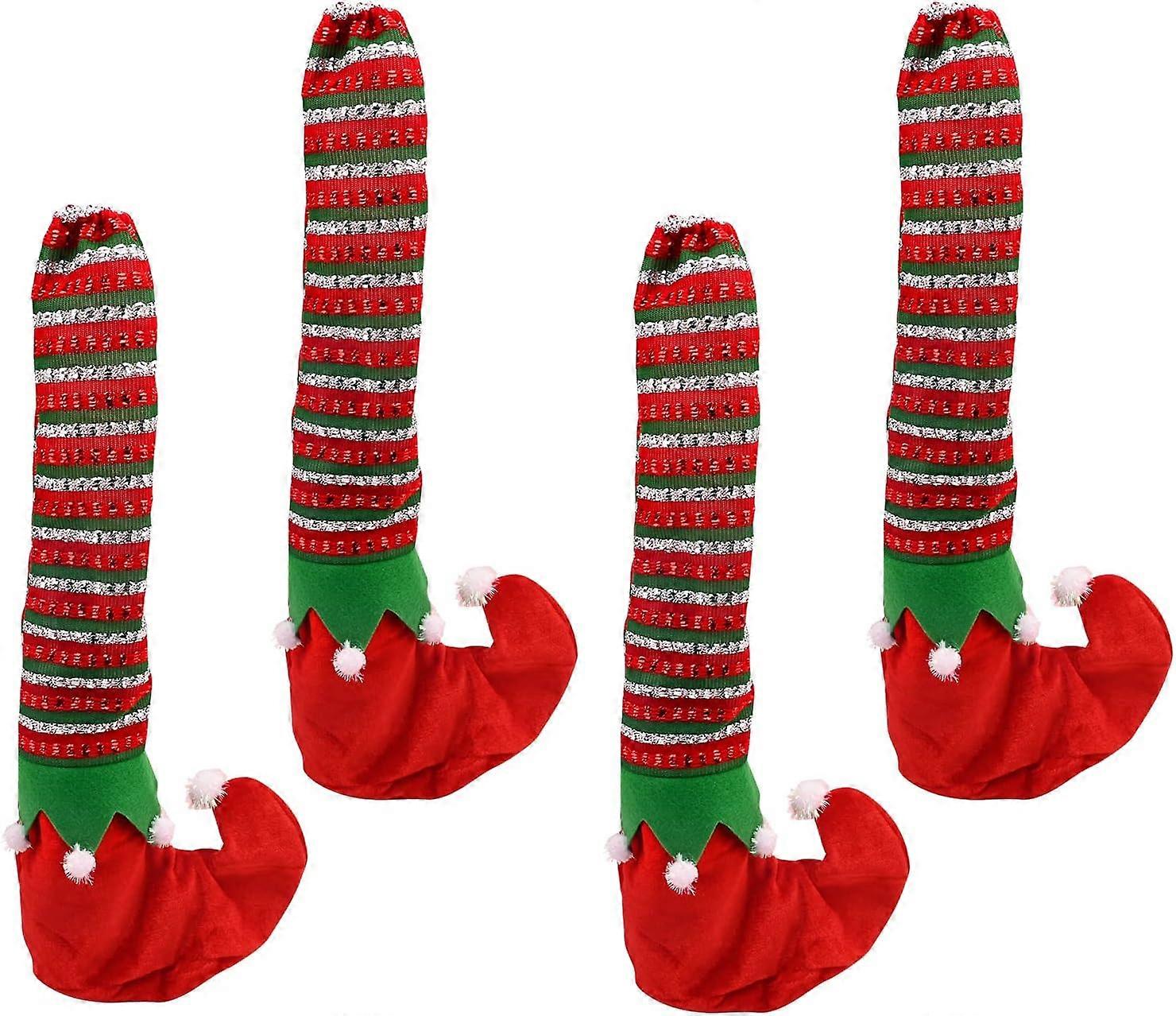 4 Pieces Christmas Chair Leg Covers, Christmas Decoration Table Chair Leg Covers Elf Stocking Slipper Table Chair Leg Covers Novelty Xmas Dinner Table