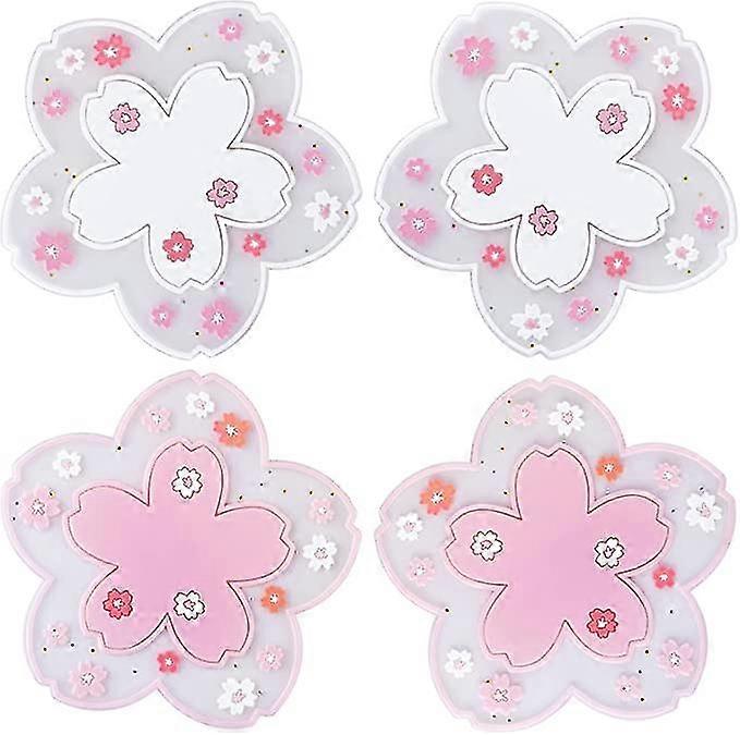 4pcs Sakura Cup Coasters, Cute Pink Macrame Drinks Coasters, Funny Silicone Coasters For Wooden Coffee Table, Flower Desk Cup Mat, Cherry Blossom