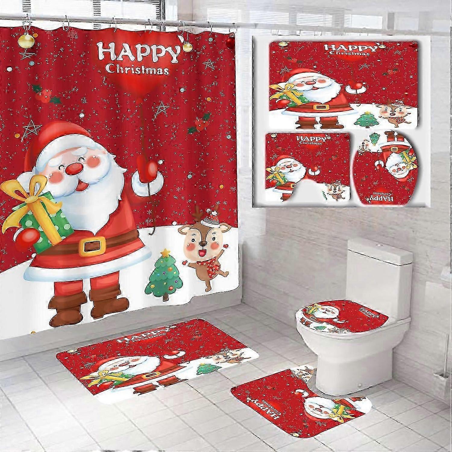 4 Piece Shower Curtain Sets, Christmas 3D Render Celebrating with Non-Slip Rugs, Toilet Lid Cover and Bath Mat, for Bathroom Decor Set