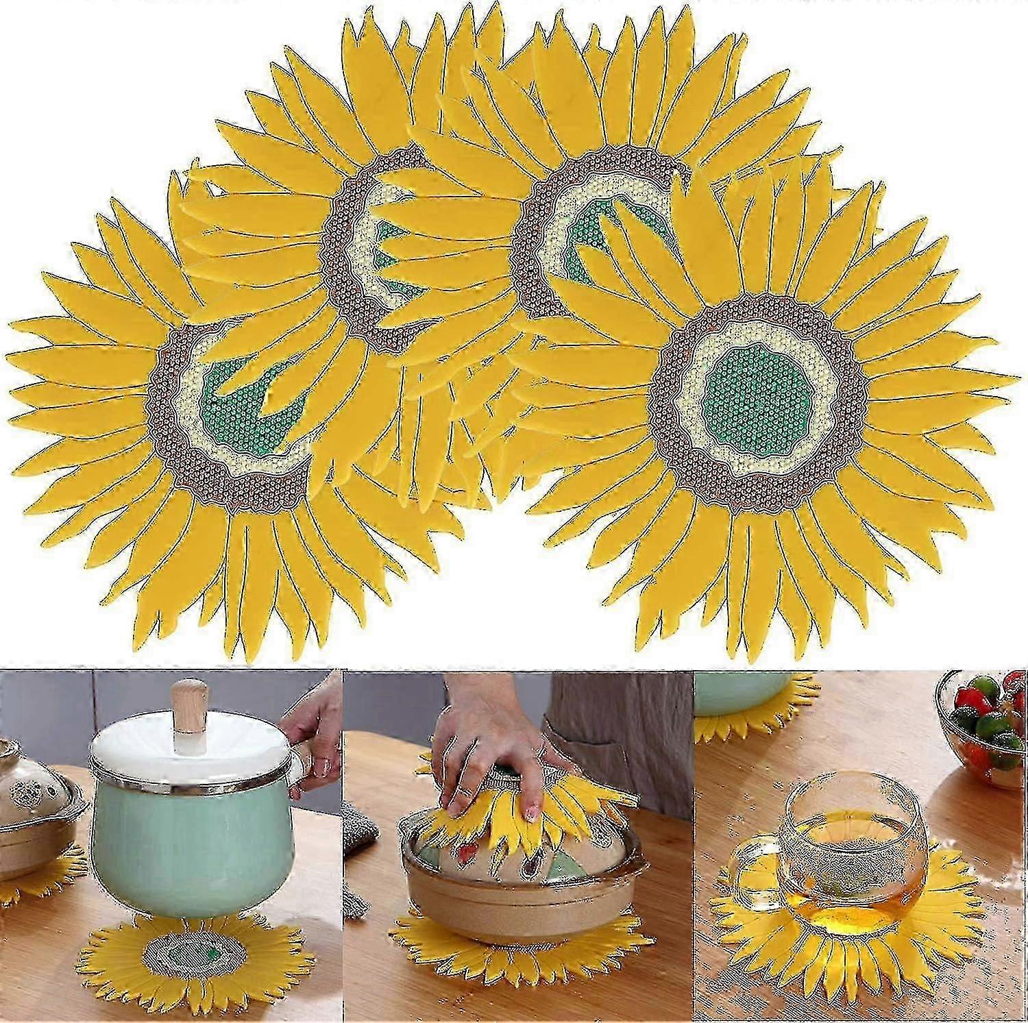 4-Piece Silicone Sunflower Trivet Set - Non-Slip Hot Pot Holder & Coasters