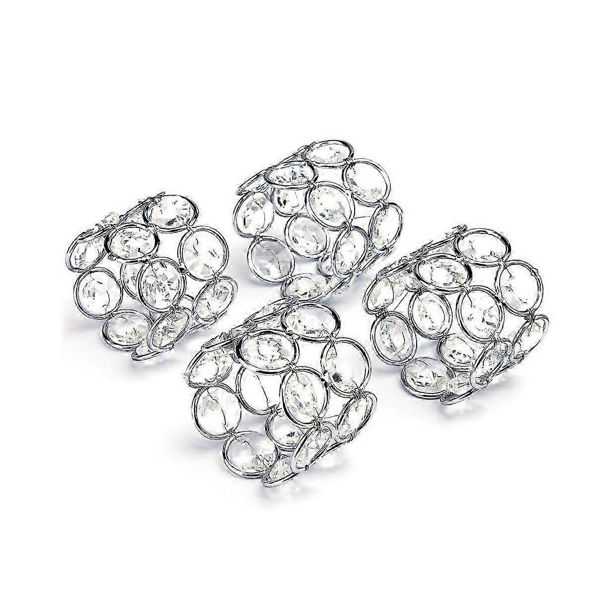 4-Piece Silver Crystal Napkin Rings - Handcrafted Wedding & Holiday Tableware