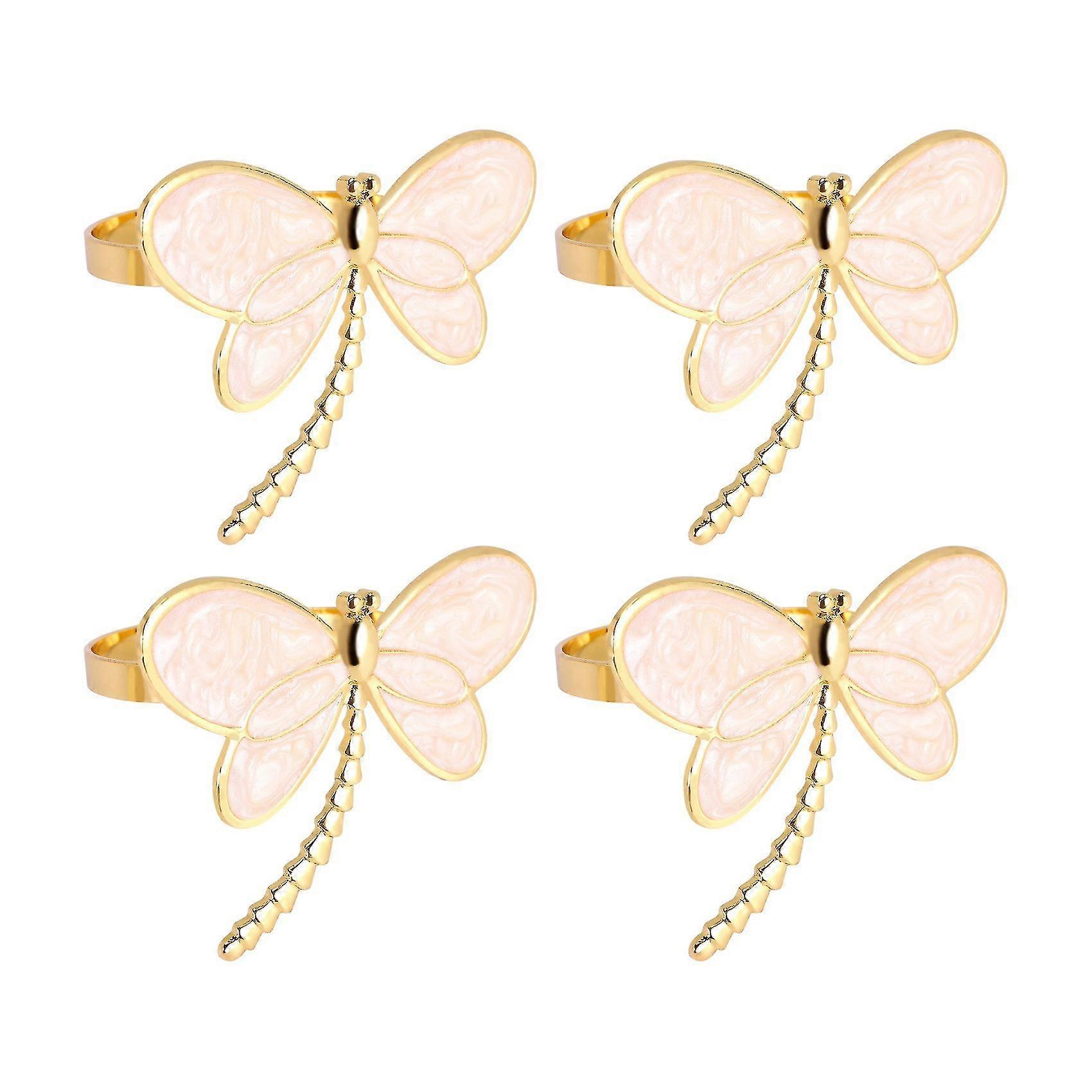 4 Piece Set, Gold Dragonfly Napkin Ring Napkin Holder, Used For Wedding Dinner Dinner Table Decorat