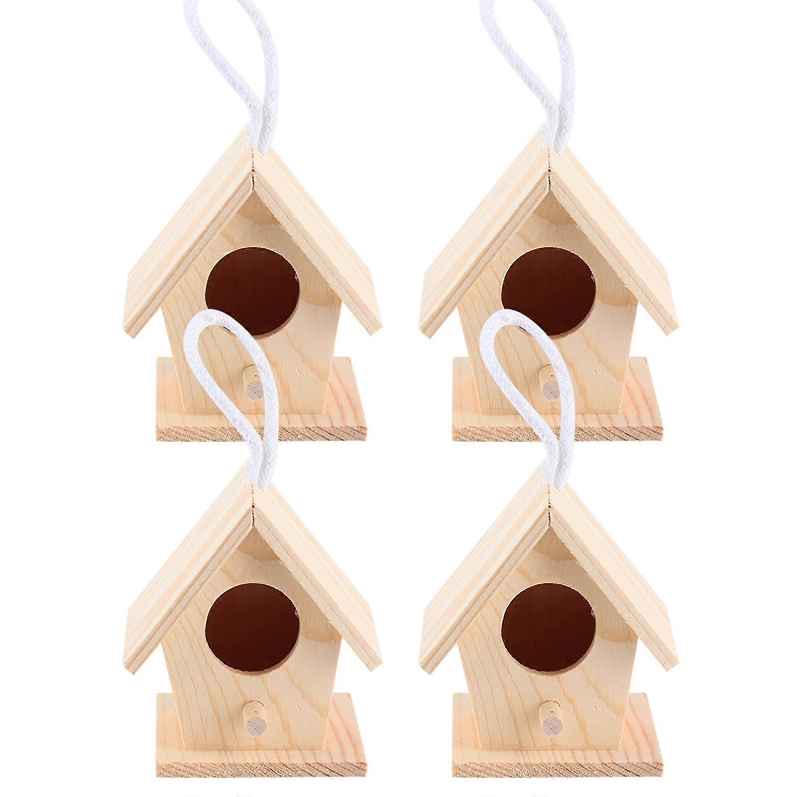 4-Piece Set Outdoor Wooden Bird House Hanging Bird Nest Rest Box Garden Decorative Ornaments