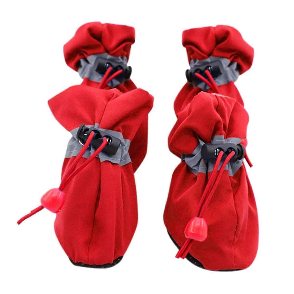4pcs/set Waterproof Winter Pet Dog Shoes Anti-slip Rain Snow Boots Footwear Thick Warm For Small Cats Puppy Dogs Socks Booties - Smallbee-5 Red