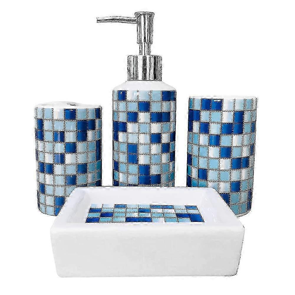4-Piece Ceramic Bathroom Set - Soap Dispenser, Toothbrush Holder, Tumbler - Modern Design