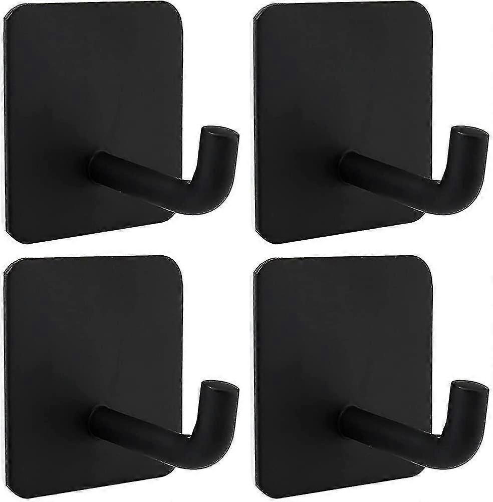 4 Pieces Self Adhesive Hooks, Black Heavy Duty Towel Wall Sticky Hooks Stainless