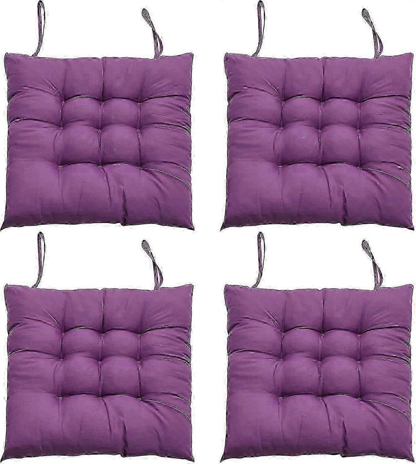 4-Piece Dining Chair Seat Cushion Set, 40 x 40cm Comfortable Dining Chair Cushion, Kitchen Chair Cushion with Tie-Straps (Purple)