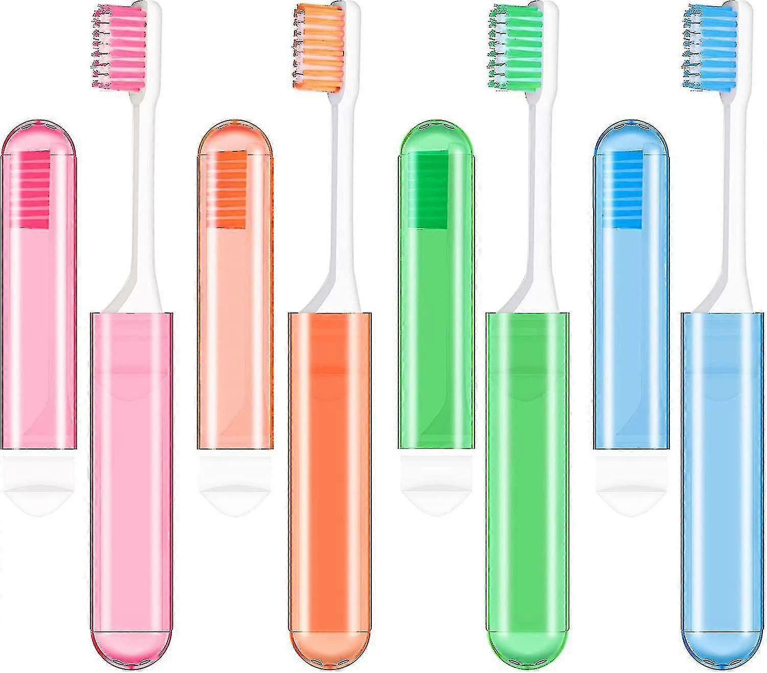 4 Pieces Travel Toothbrush Kit Portable Folding Toothbrush With Toothbrush Box Soft Mini Toothbrush Disposable Travel Size
