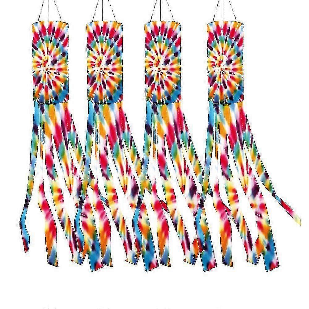 4 Pieces Tie Dye Windsocks Rainbow Windsock Flags Outdoor Hanging Decorations Home Yard Garden