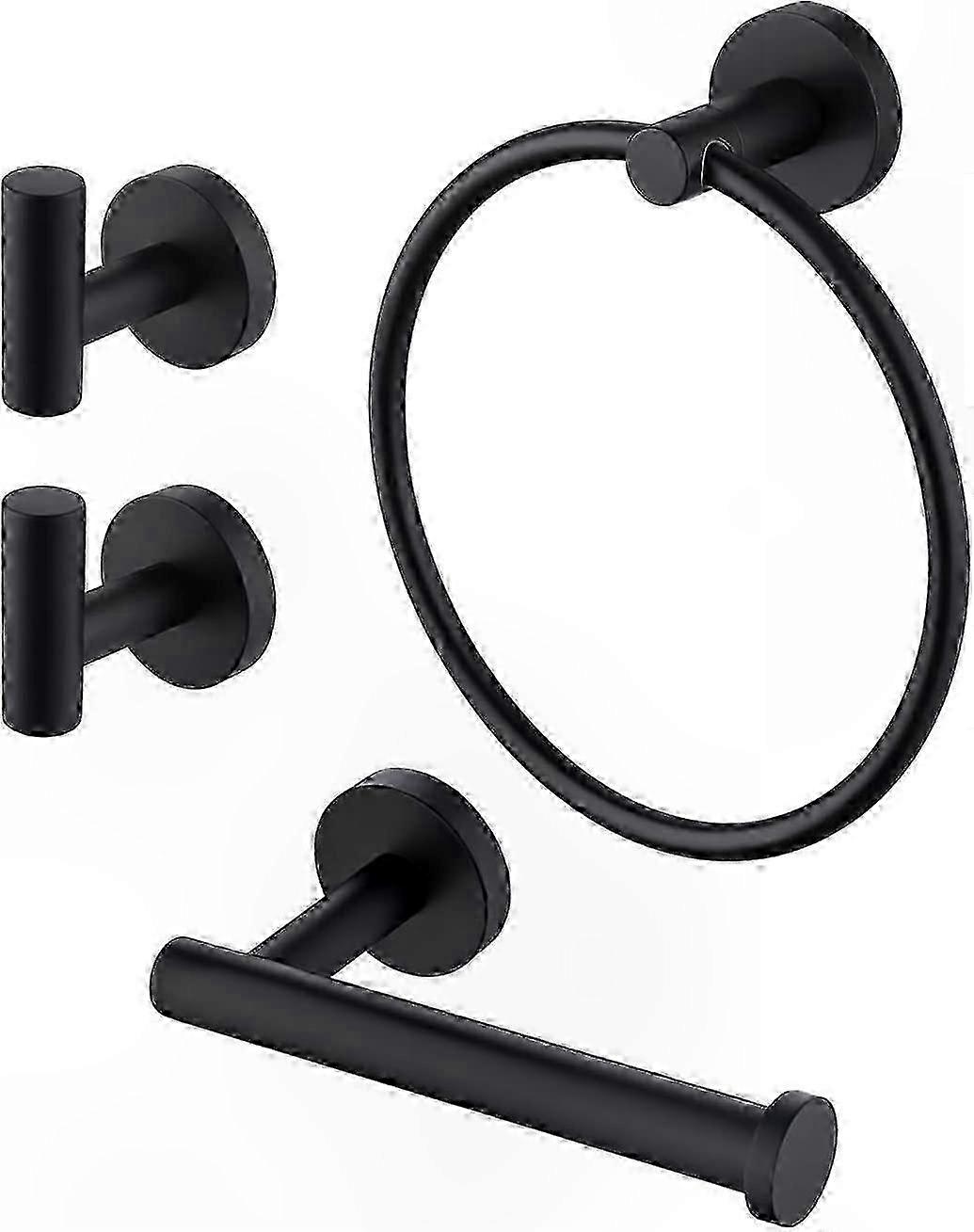 4-Piece Bathroom Accessory Set Wall Mounted Towel Ring Hook Toilet Roll Holder SUS304 Stainless Steel Black Finish