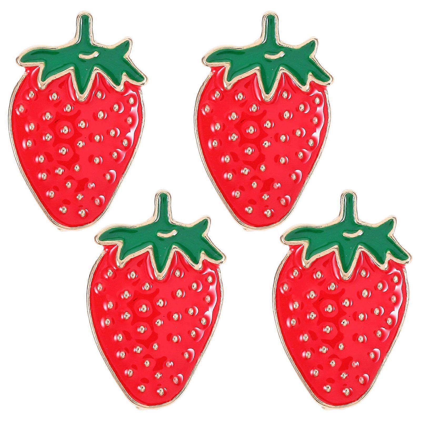 4pcs Brooch Jewelry Summer Party Fashion Brooch Lapel Pin Set Collar Clips Strawberry Fruit Accessories for Clothing and Bags