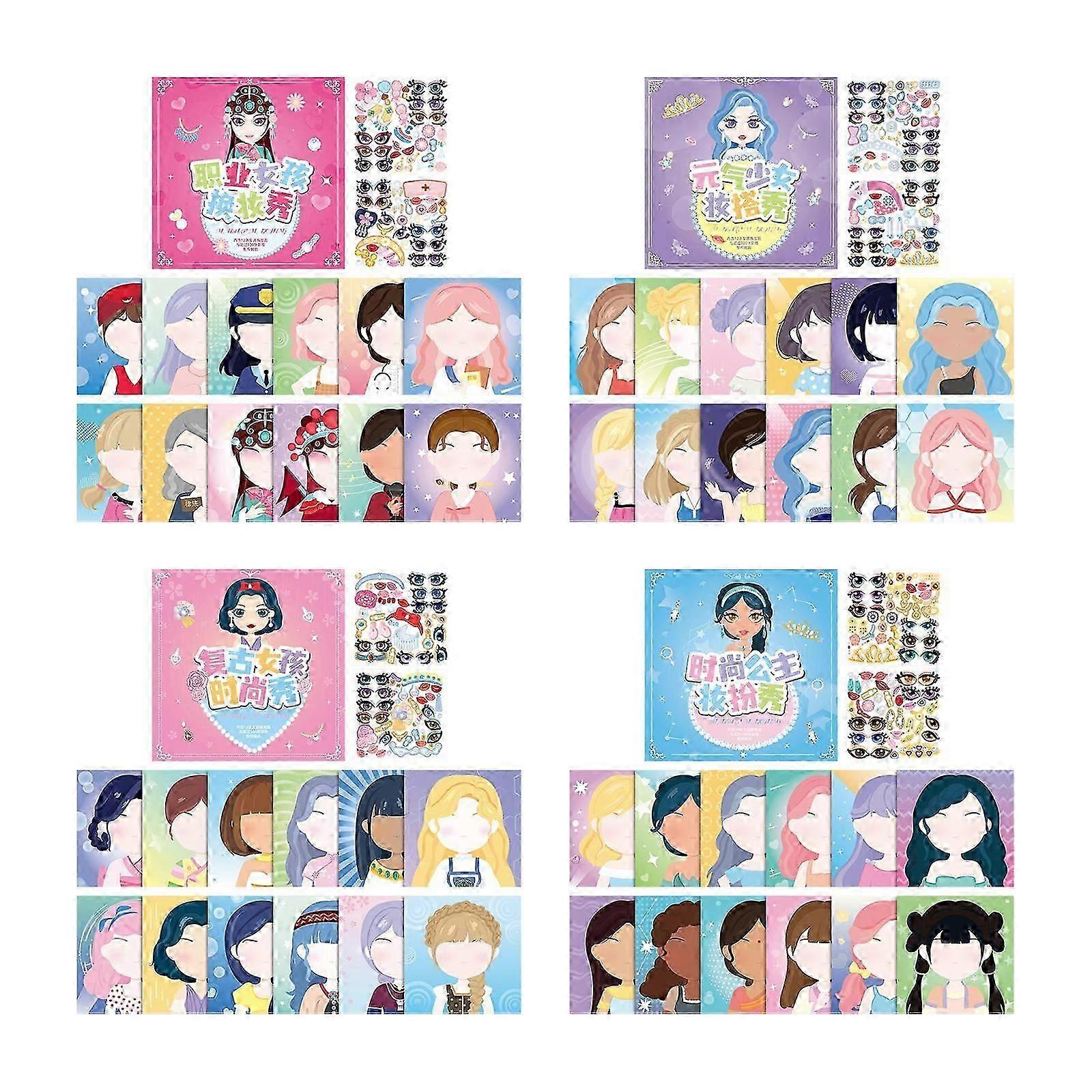 4 Pieces Face Sticker Books Decorating Reward Trendy Princess Sticker Book