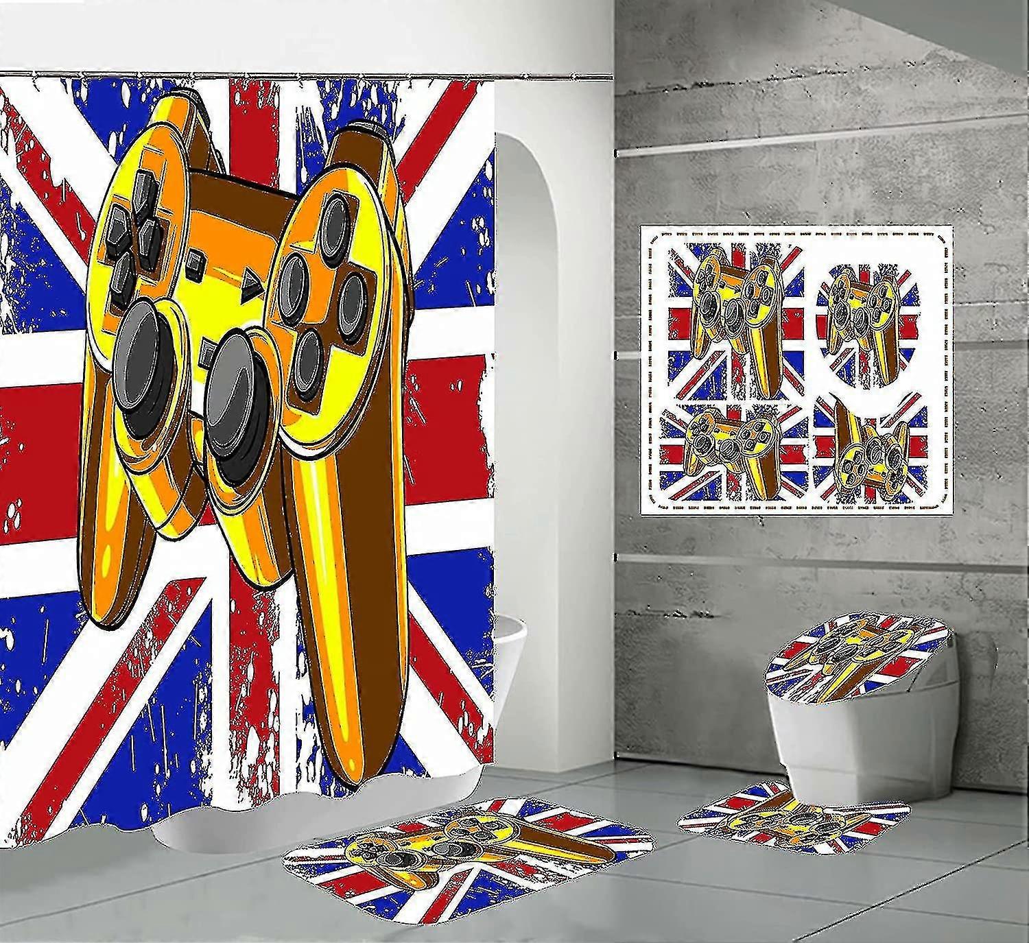 4 Piece Boy Gamer Theme Shower Curtain Set Hippie Black Video Game Shower Curtain Bathroom Anti-slip Mat Toilet Cover Carpet Set( Color : Picture 51 )