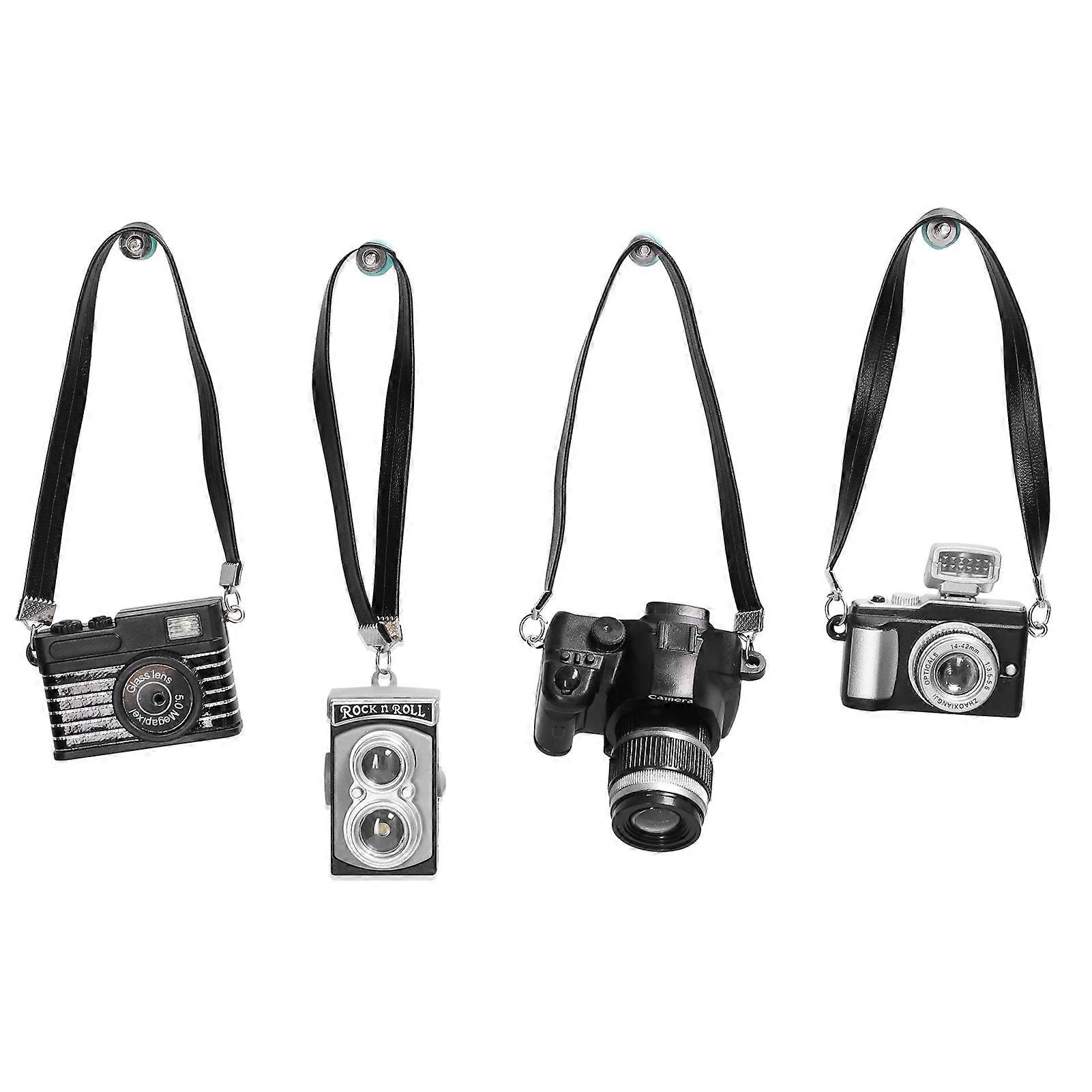 4pcs Mini Dollhouse Camera Ornament Miniature Dollhouse Decoration SLR Camera with Lanyard