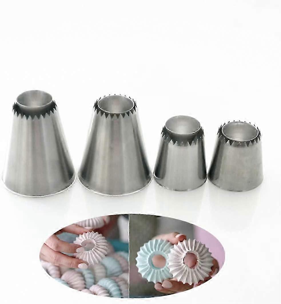 4 Pieces Large Stainless Steel Reusable Cake Flower Piping Tips Dropping Decorating Tips Tools Set for Pie Biscuit Cakes Cream Pastry