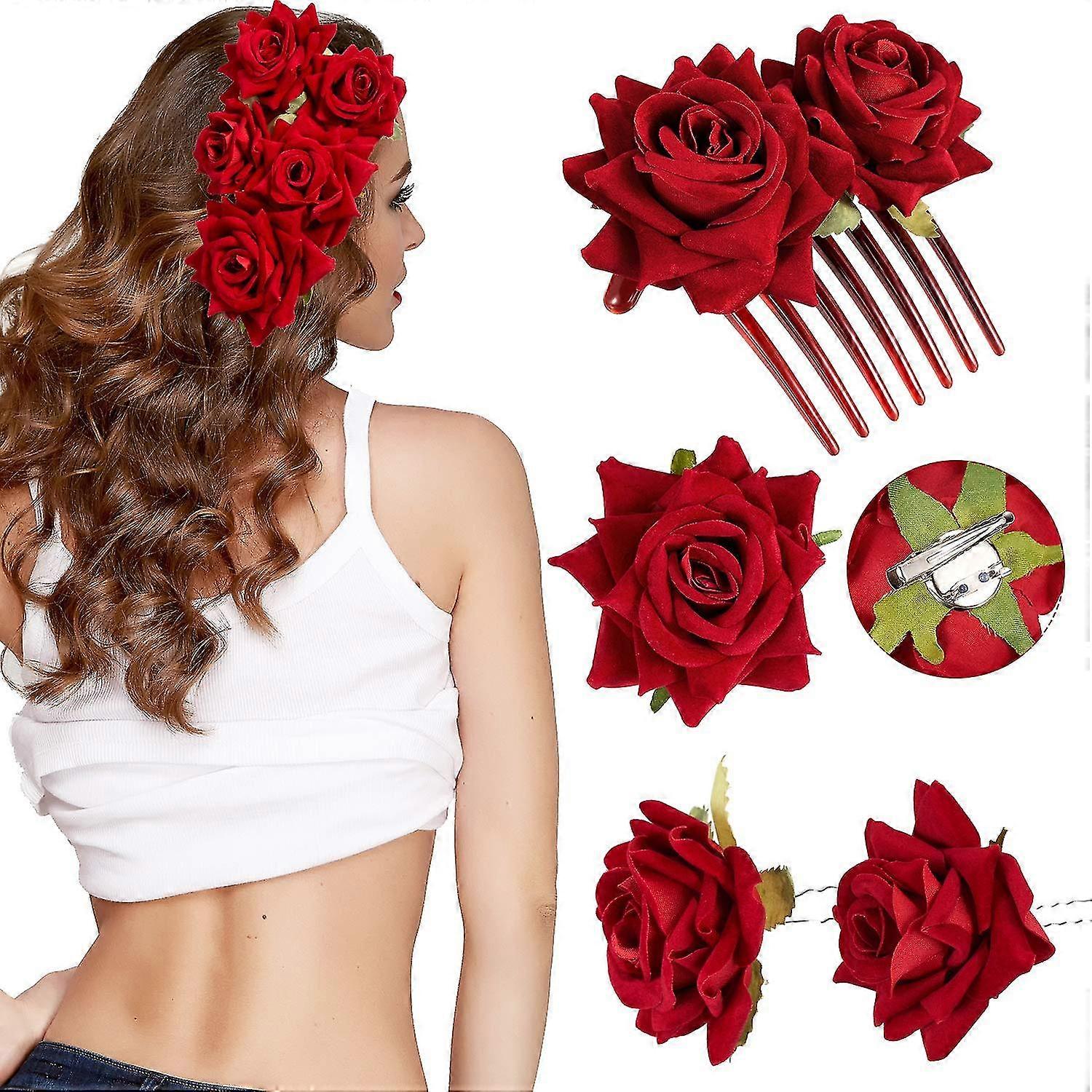 4 Pieces Rose Hair Clip Flower Hairpin Rose Brooch Floral Clips Women Rose Flower Hair Accessories-MXBC
