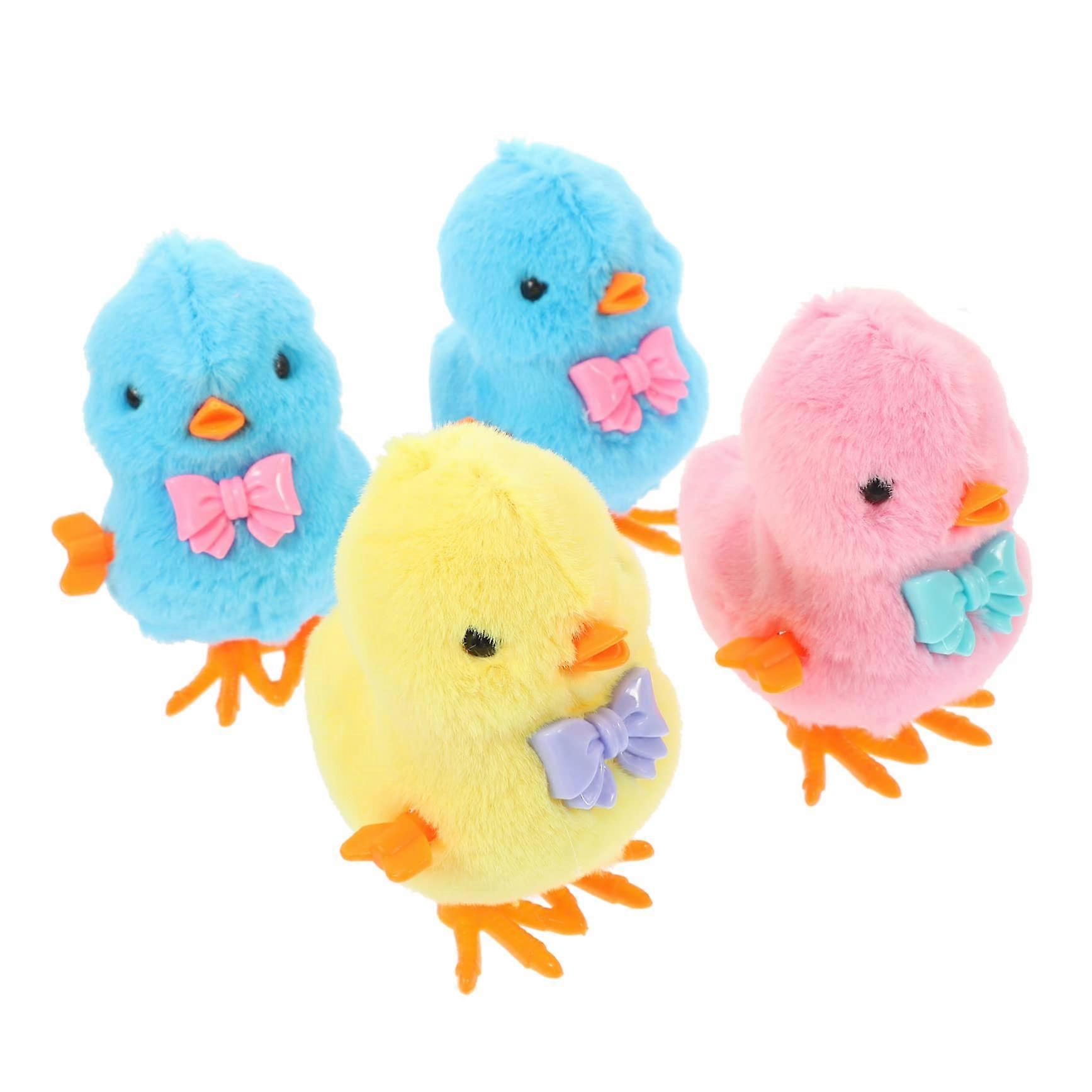 4 Pieces WindUp Plush Chicks, Random Colors, Soft WindUp Animal Toys for Easter Celebrations and Kids' Parties