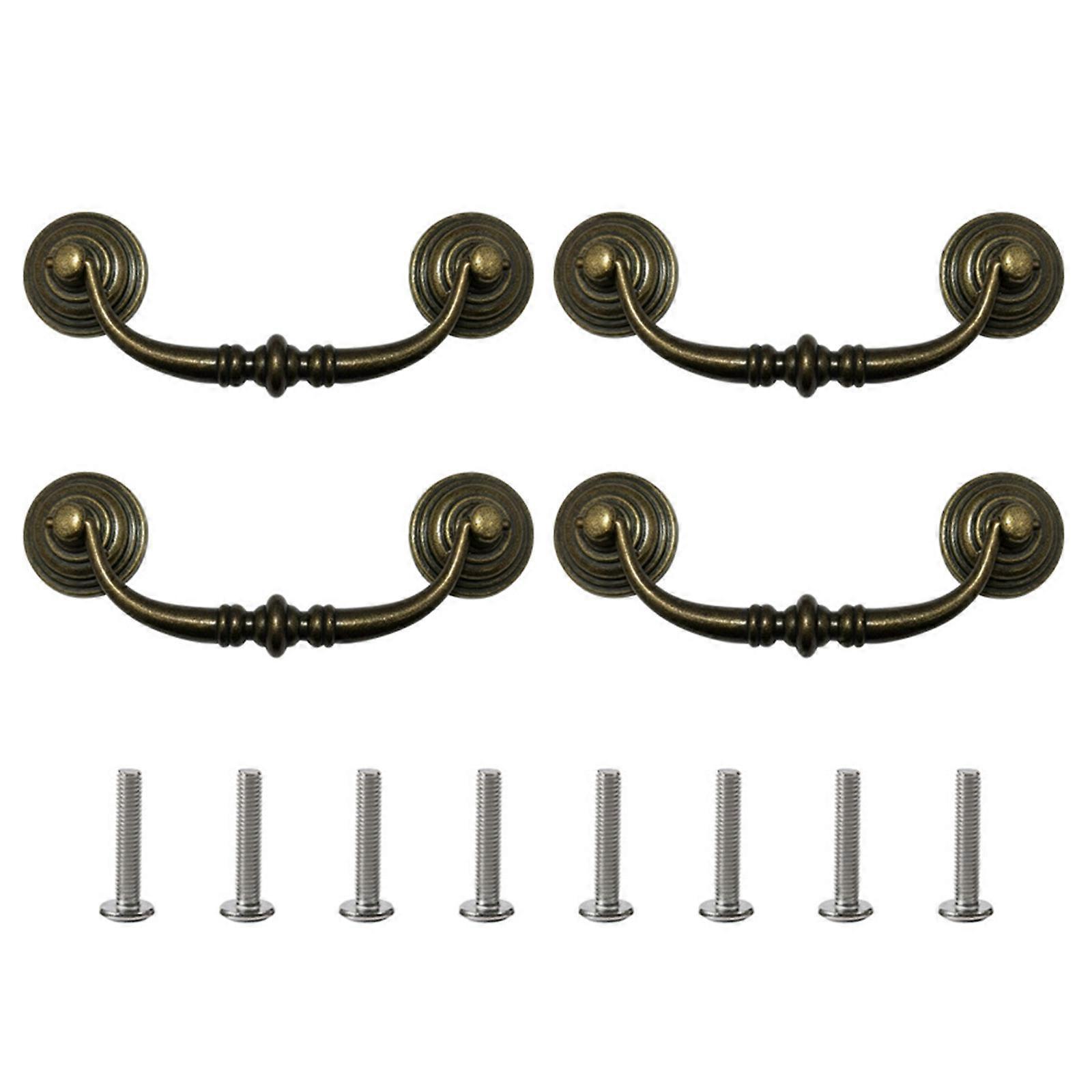 4Pieces Sturdy Antique Styles Drop Bail Pulls Hole Center Decoration Convenient for Dressers Wardrobes and Cupboards