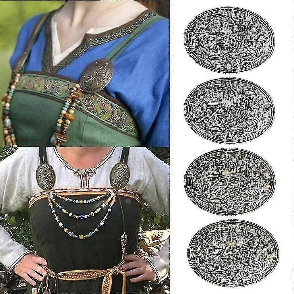 4 Pieces Norse Medieval Viking Symbol Brooch Oval Shawl Sweater Pin