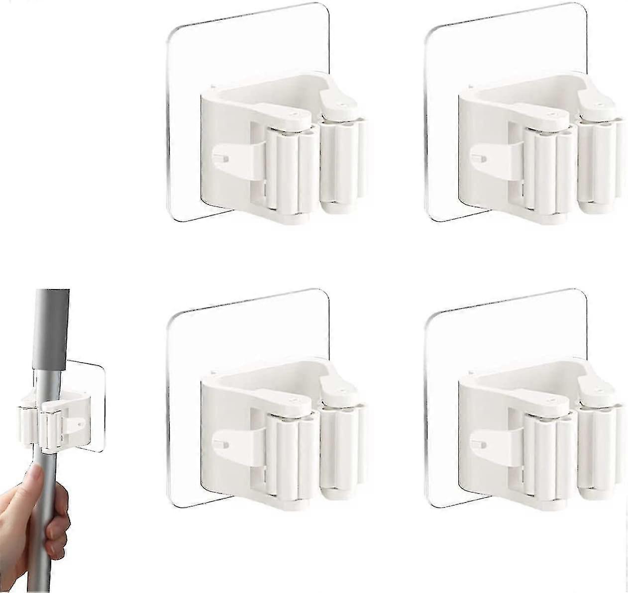 4 Pieces Wall Mounted Broom Holder Self Adhesive Mop Holder Broom Hanger Wall