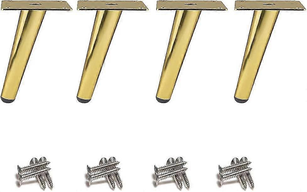 4 Pieces Oblique Table Legs Metal Cabinet Legs, Cone Furniture Legs, 201 Stainless Steel, Golden, 10cm Height, Non-slip Silent Base For Sofas, Tables