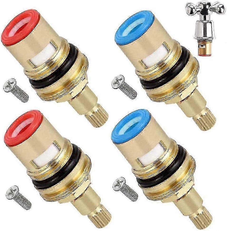 4 Pieces Brass Ceramic Disc Faucet, Replacement Ceramic Cartridge, Universal Ceramic Brass Cartridges for Kitchen Faucets (Red, Blue)