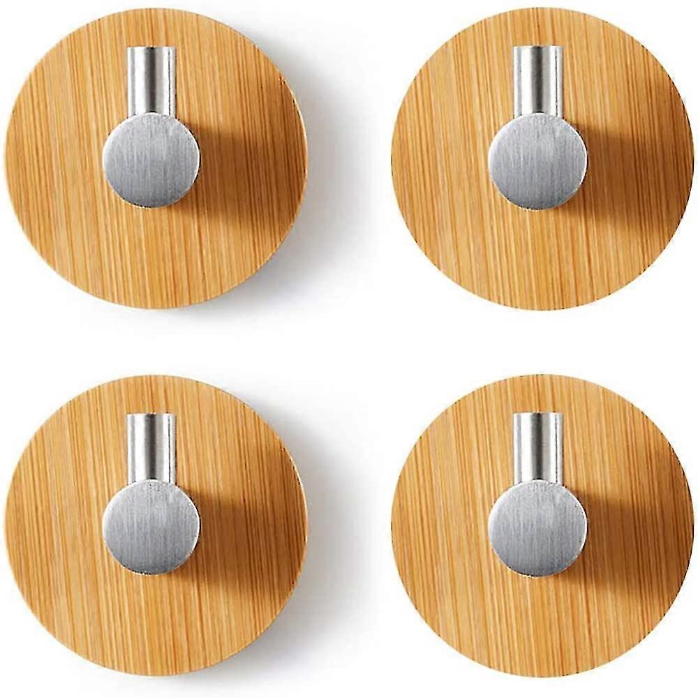 4 Pieces Bamboo Wall Hook, Bamboo Stainless Steel Hooks, Bamboo Adhesive Hook, No Drilling Self Adhesive Towel Hooks For Bathroom, Toilet, Kitchen (si