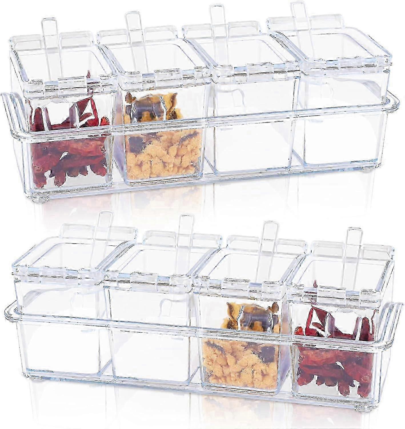 4-Piece Clear Plastic Spice Jars with Lids & Spoon, Seasoning Storage Containers