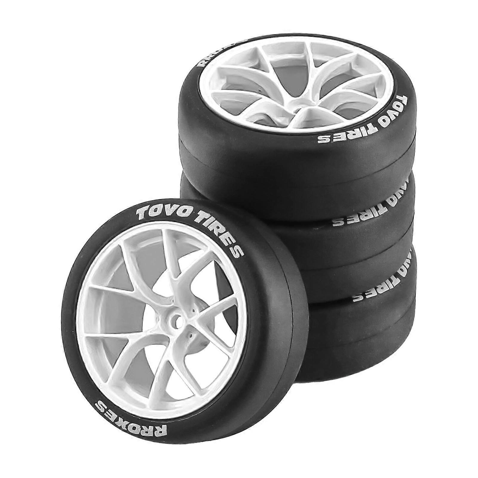 4 Pieces RC Car Rubber Tyres WearResistant Durable Replaces XV01 1:10 RC on Road Car, White