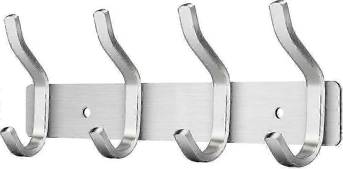4 Hook Wall Mounted Coat Rack, Coat Hooks Wall Mounted Stainless Steel Towel Hook (4 Silver Hooks)