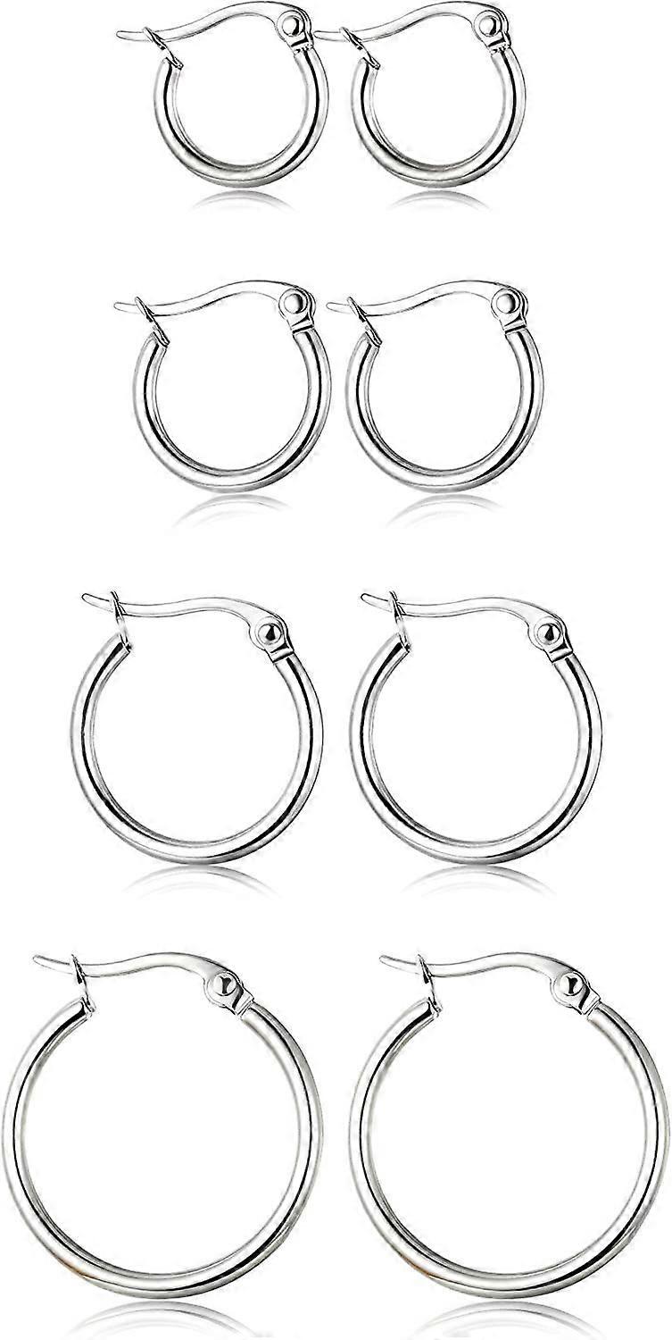 4 Pairs Stainless Steel Hoop Earrings Set Cute Huggie Earrings for Women,10MM-20MM