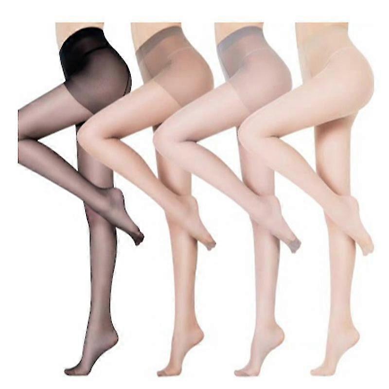 4 Pairs Women's Sheer Tights - 10d Control Top Pantyhose With Reinforced Toes