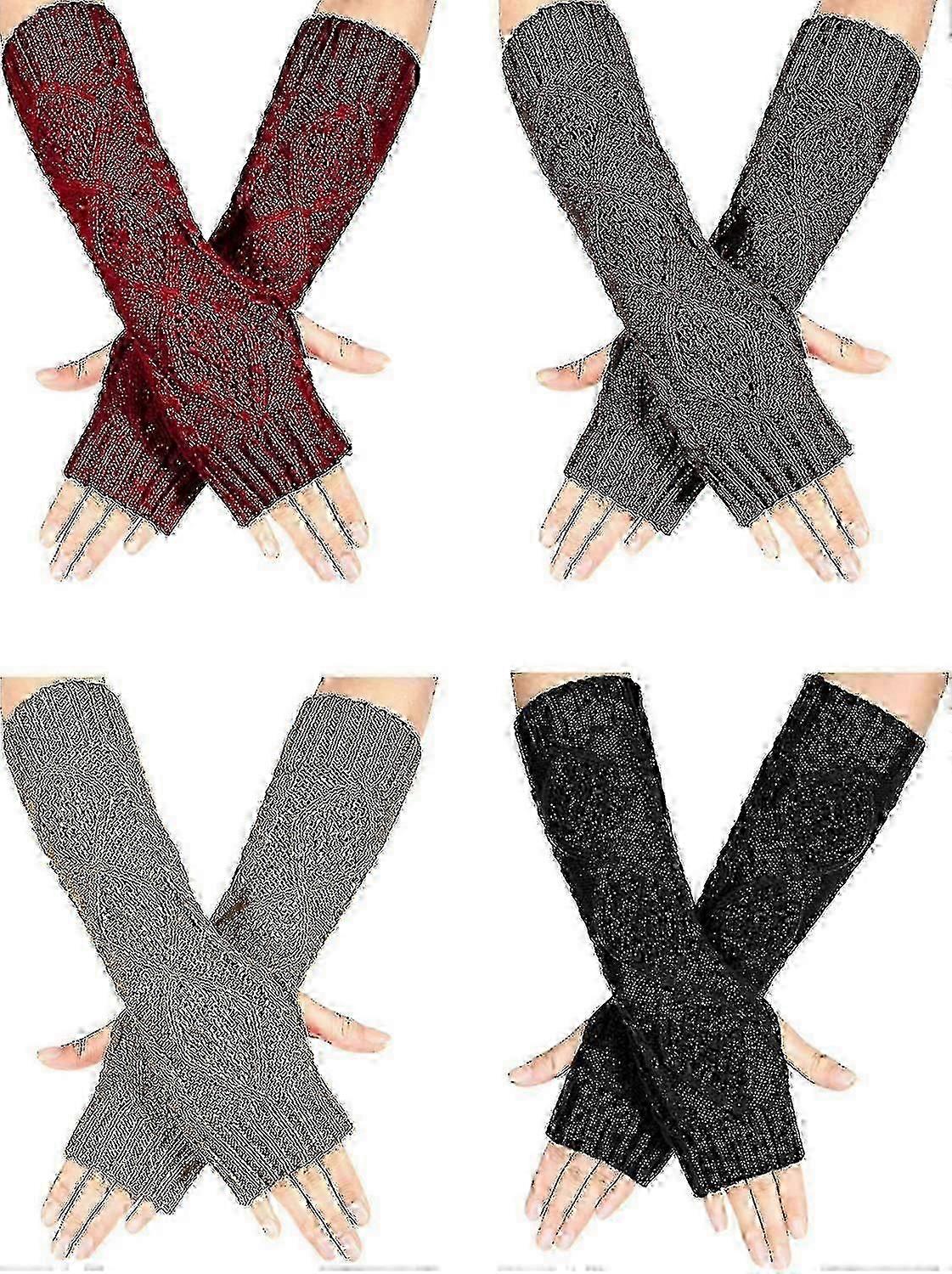 4 Pairs Winter Knit Warm Long Glove Thumbhole Fingerless Gloves Arm Warmers Glove For Women