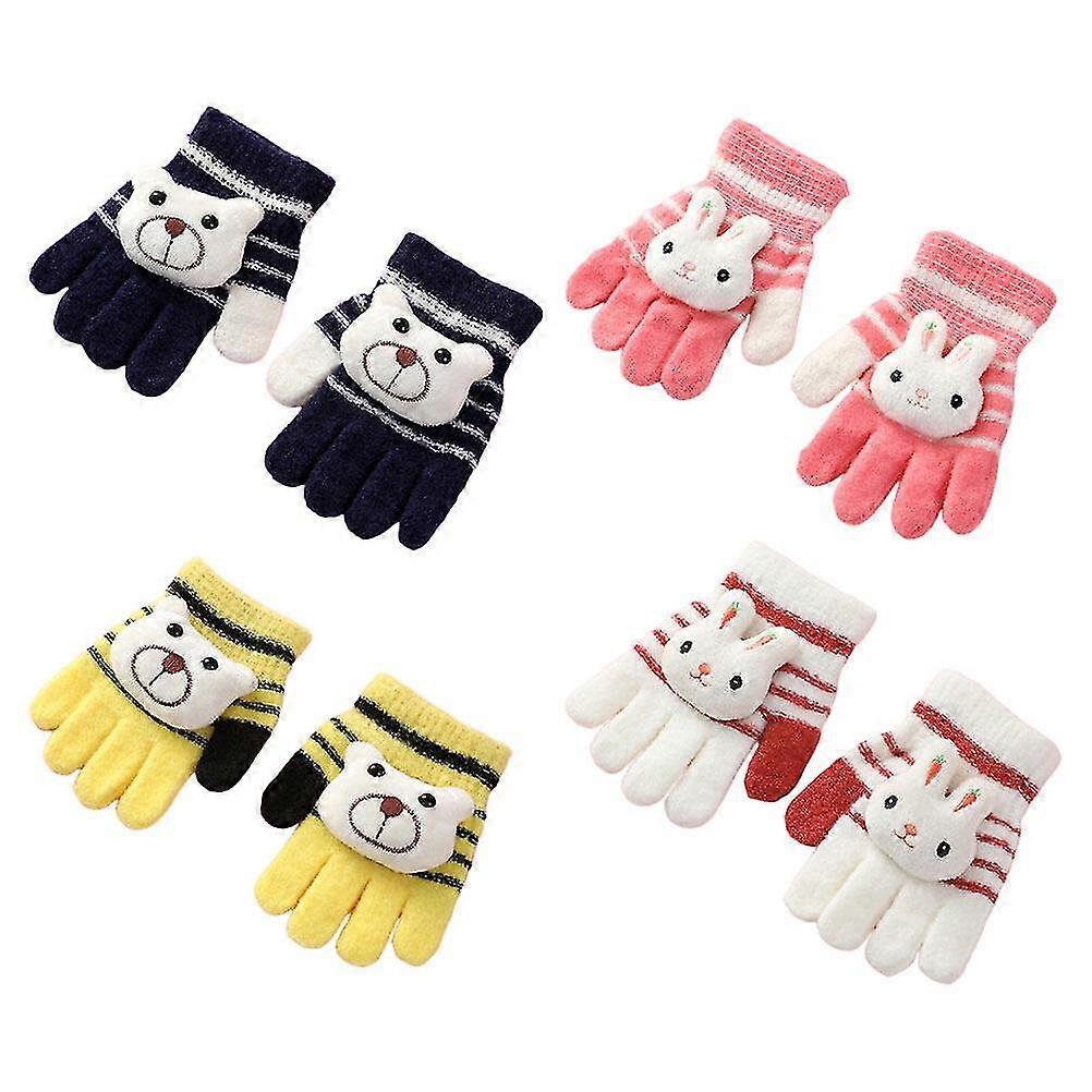 4 Pairs Winter Writing Warm Gloves Kids Knitted Gloves Cartoon Gloves (assorted Color)