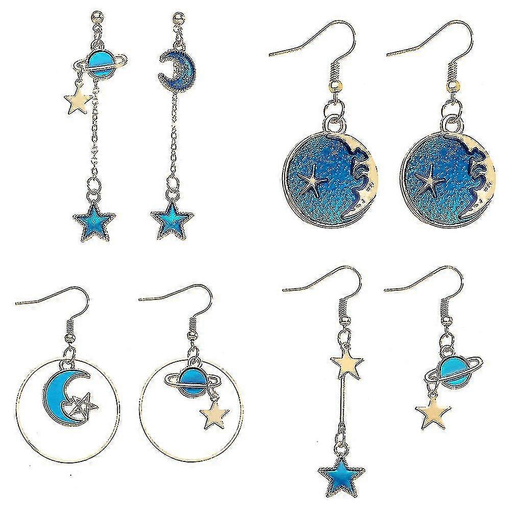 4 Pairs Creative Blue Starry Sky Planet Earring Pendant